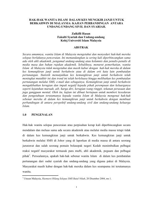 Hak Hak Wanita Islam Dalam Kes Mungkir Janji Untuk Berkahwin Di