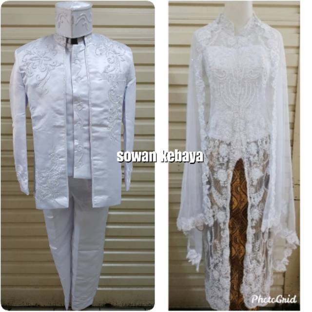 Couple Baju Akad Nikah Kebaya Putih Sepasang Kebaya Pengantin Ekor Satin Modern Kebaya Pernikahan Modern Di Lapak Yashinta Store Bukalapak