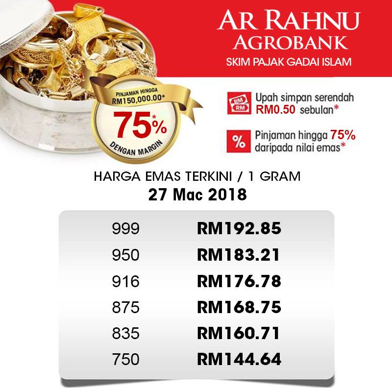 Agrobank On Twitter Harga Emas Ar Rahnu Agrobank Pada 27 Mac 2018 Dapatkan Pinjaman Ar Rahnu Sehingga 75 Bagi Pelanggan Baru Dan Sedia Ada Di 115 Cawangan Agrobank Di Seluruh Negara Agrobank
