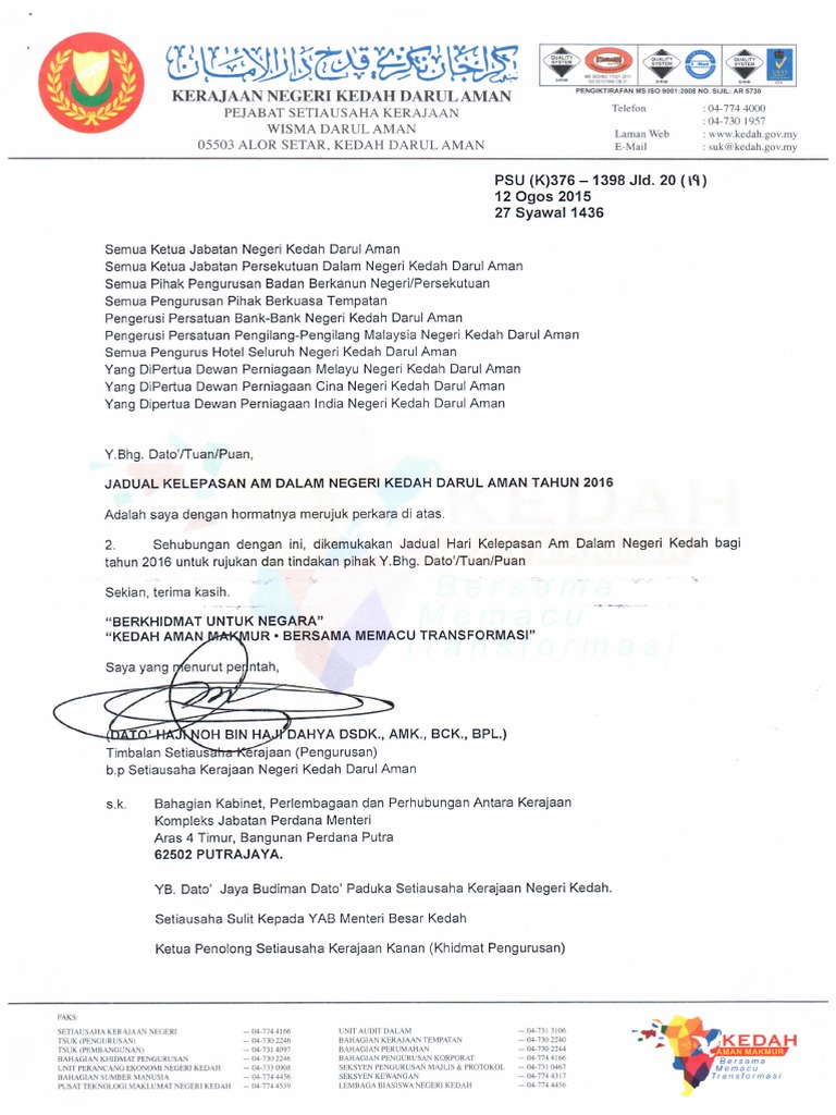 Hari Kelepasan Am Negeri Kedah 2016