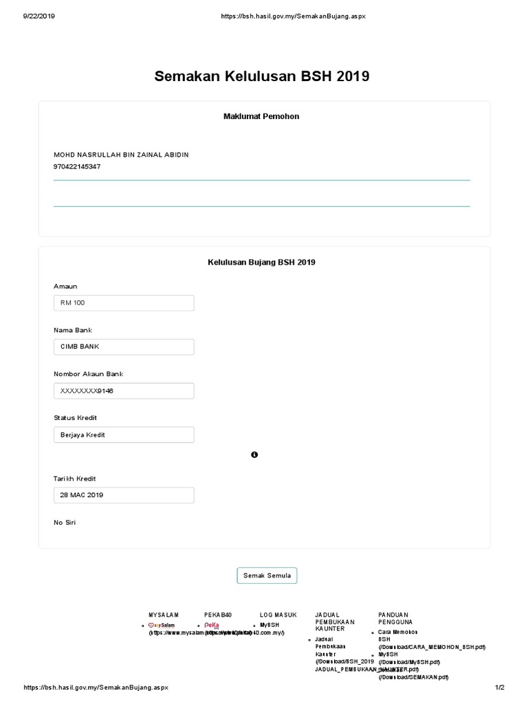 Semakan Bsh Fasa 3 Pembayaran Tambahan Rm100 Julai 2020