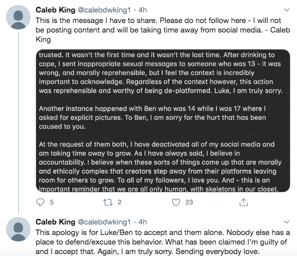 Tiktok Star Caleb King Apologizes For Sexual Texts To Minor