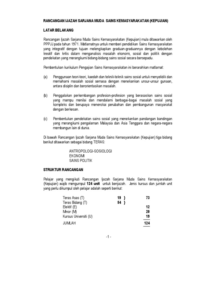 Rancangan Ijazah Sarjana Muda Sains Berikut Ditawarkan Sebagai Bidang Teras Antropologi Sosiologi Pdf Document