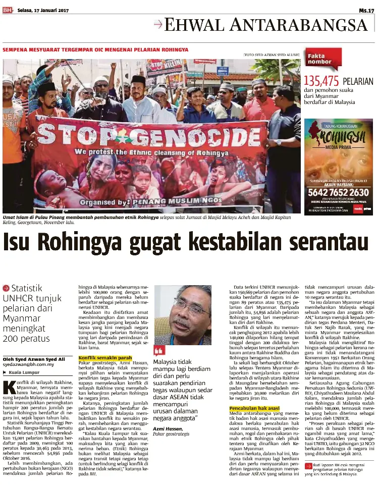 Pressreader Berita Harian 2017 01 17 Isu Rohingya Gugat Kestabilan Serantau