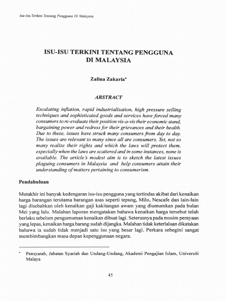 Isu Isu Terkini Tentang Pengguna Dl Malaysia Jurnal Syariah