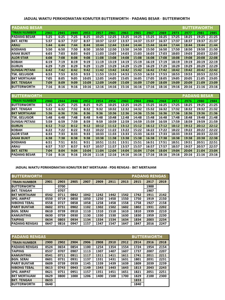 Jadual waktu perkhidmatan komuter butterworth padang besar butterworth jadual waktu perkhidmatan komuter bkt mertajam pdg rengas bkt mertajam. Jadual komuter utara padang rengas ke bukit metajam butterworth latest new commuter schedule from 2020 03 02 2nd march 2020. Ktm komuter utara ialah perkhidmatan tren elektrik ktm komuter yang diperkenalkan oleh ktm berhad untuk penduduk sektor utara dari kawasan kamunting perak hinggalah padang besar perlis.