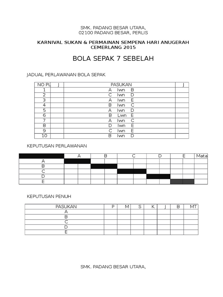 Contoh Jadual Perlawanan Bola Sepak Xlsx