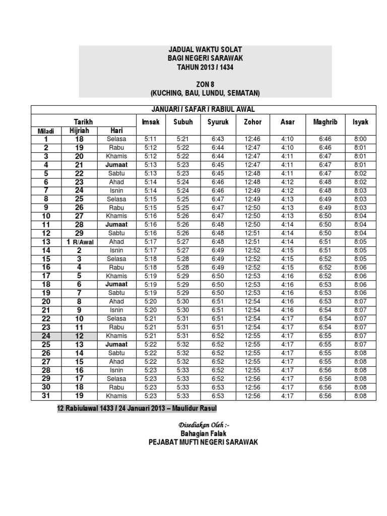 Jadual Waktu Solat Sarawak Zon 4