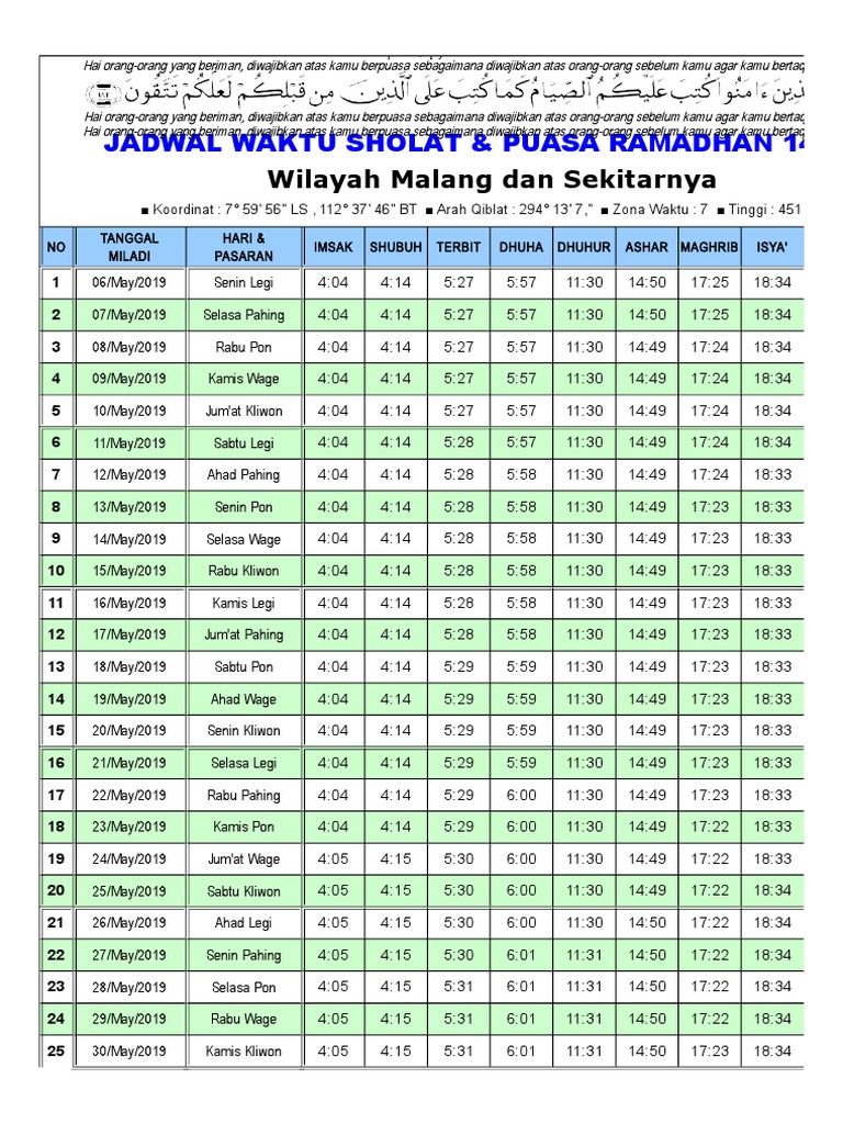 Jadwal Sholat Versi Pdf Excel Kuala Lumpur Wilayah Persekutuan Malaysia Alhabib