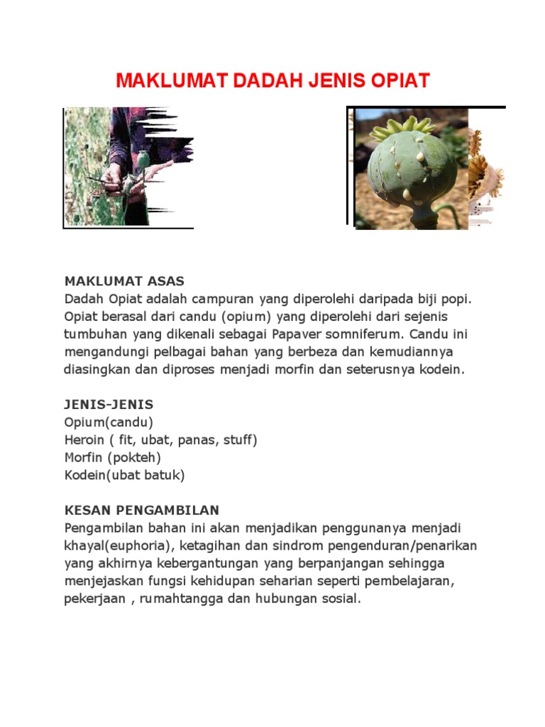 Jenis Jenis Dadah Opiat Aadk Daerah Dang Wangi Facebook