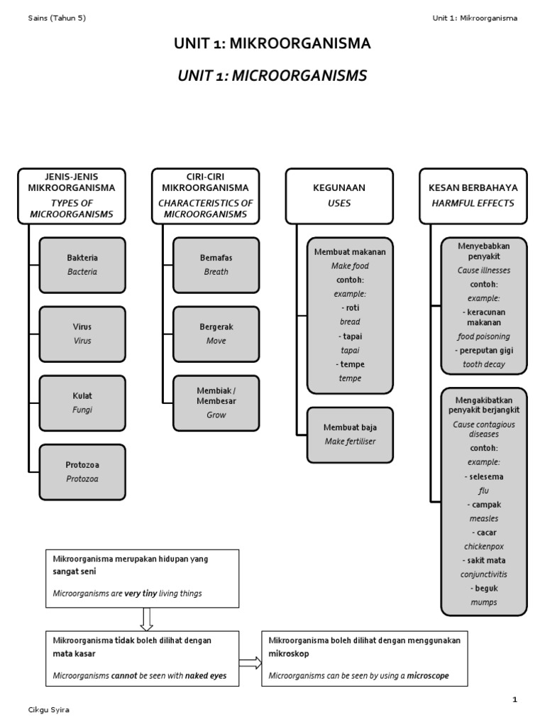 Sains Tahun 5 Unit 1 Mikroorganisma Dwibahasa Bilingual