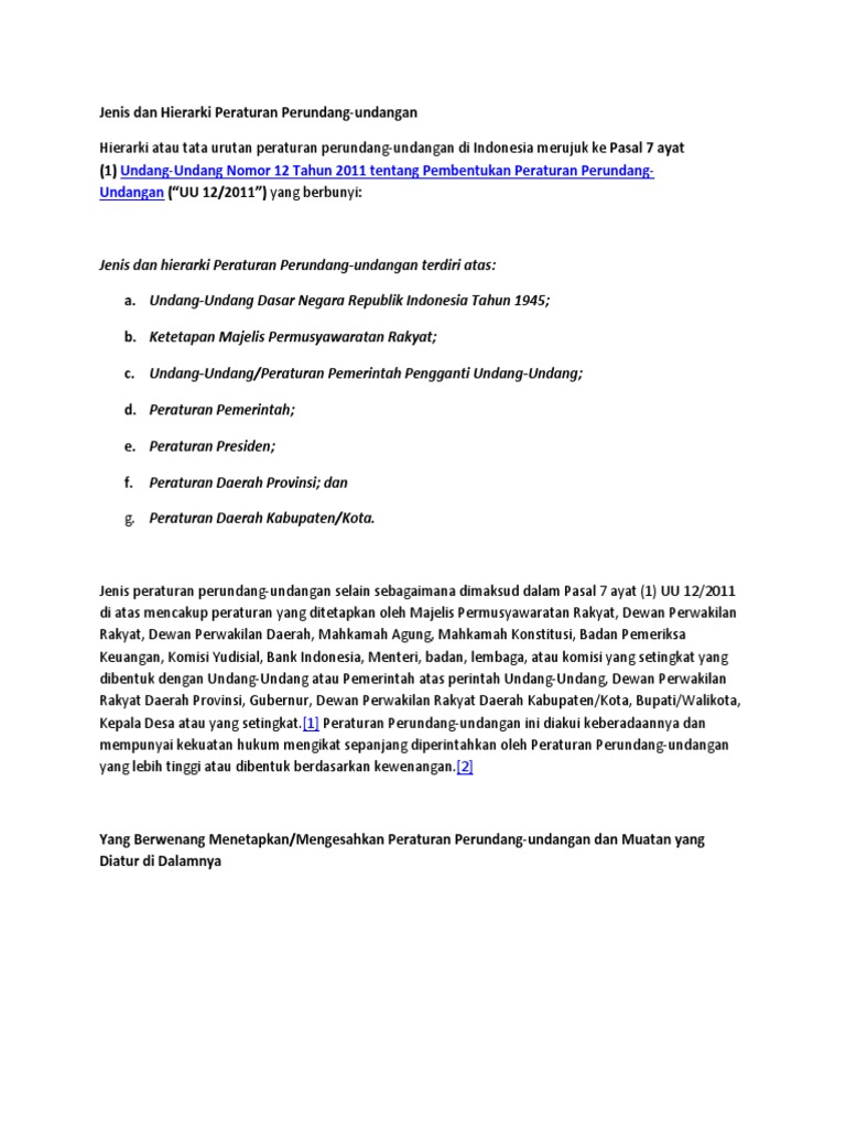 Mengurutkan Jenis Dan Hierari Peraturan Perundang Undangan Di Indonesia Sesuai Pasal 7 Undang Brainly Co Id