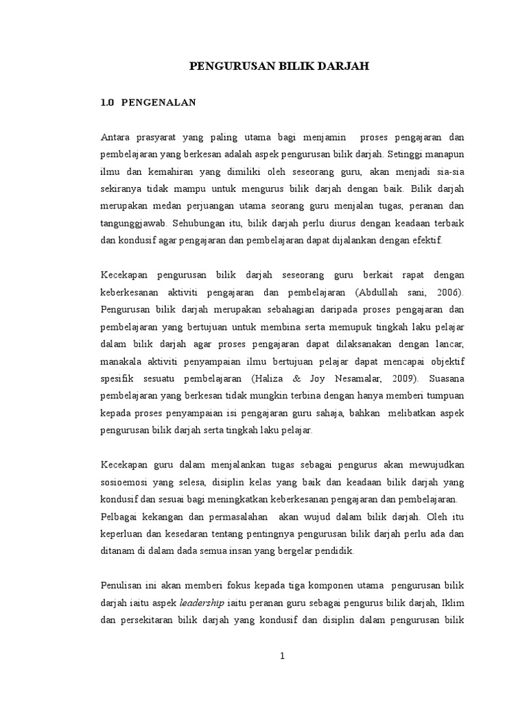 Doc Pengurusan Bilik Darjah Satu Kajian Literatur Ringkas Ustazah Afifah Academia Edu